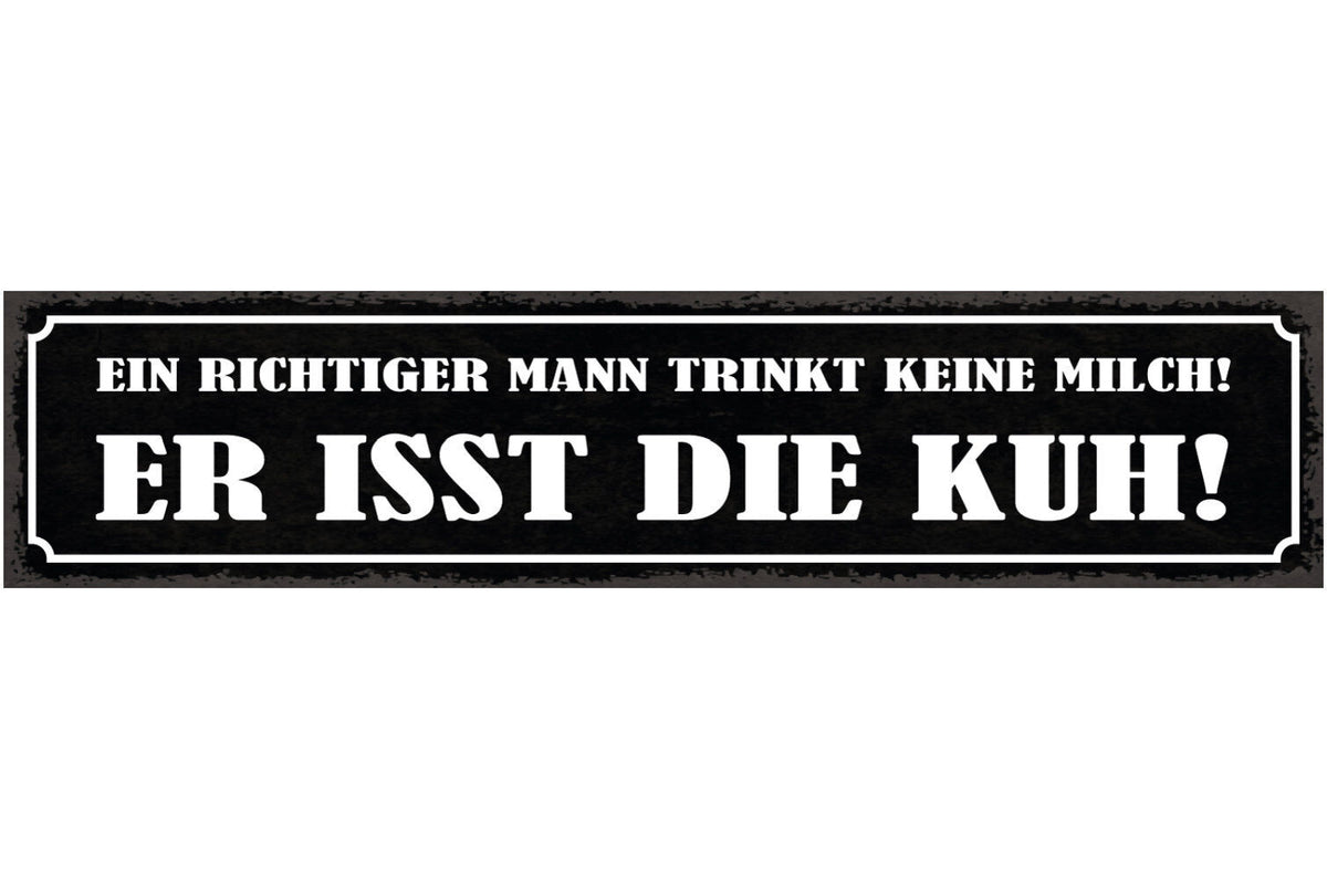 Schild Ein Richtiger Mann Trinkt Keine Milch Er Isst Die Kuh Fleisch 46 x 10 Im Angebot