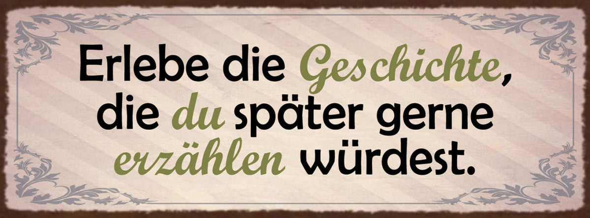 Schild Erlebe Die Geschichte Die Du Später Gerne Erzählen Möchtest Leben 27x10 Im Angebot