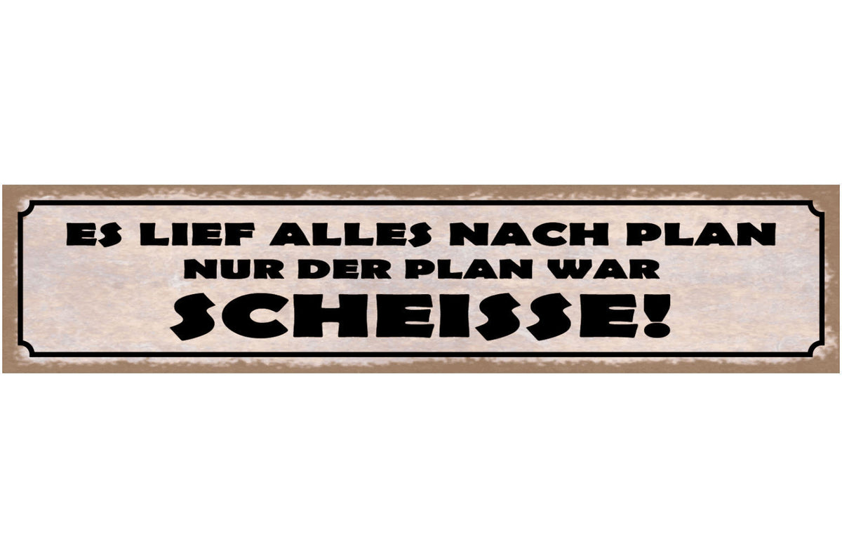 Schild Es Lief Alles Nach Plan Nur Der Plan War Scheisse 46 x 10 Blech od. Holz Im Angebot