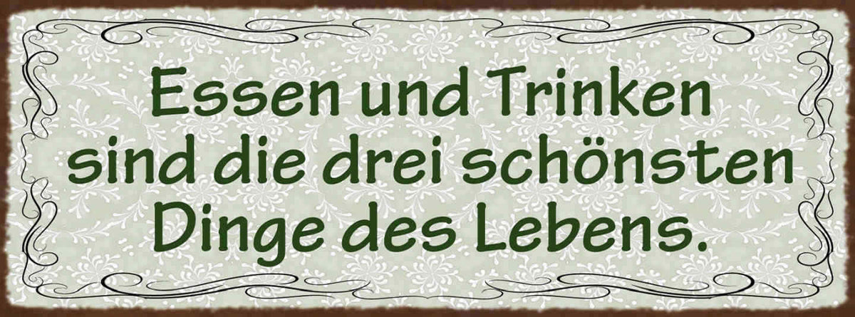 Schild Essen & Trinken Sind Die 3 Schönsten Dinge Des Lebens 27x10 Blech od.Holz Im Angebot