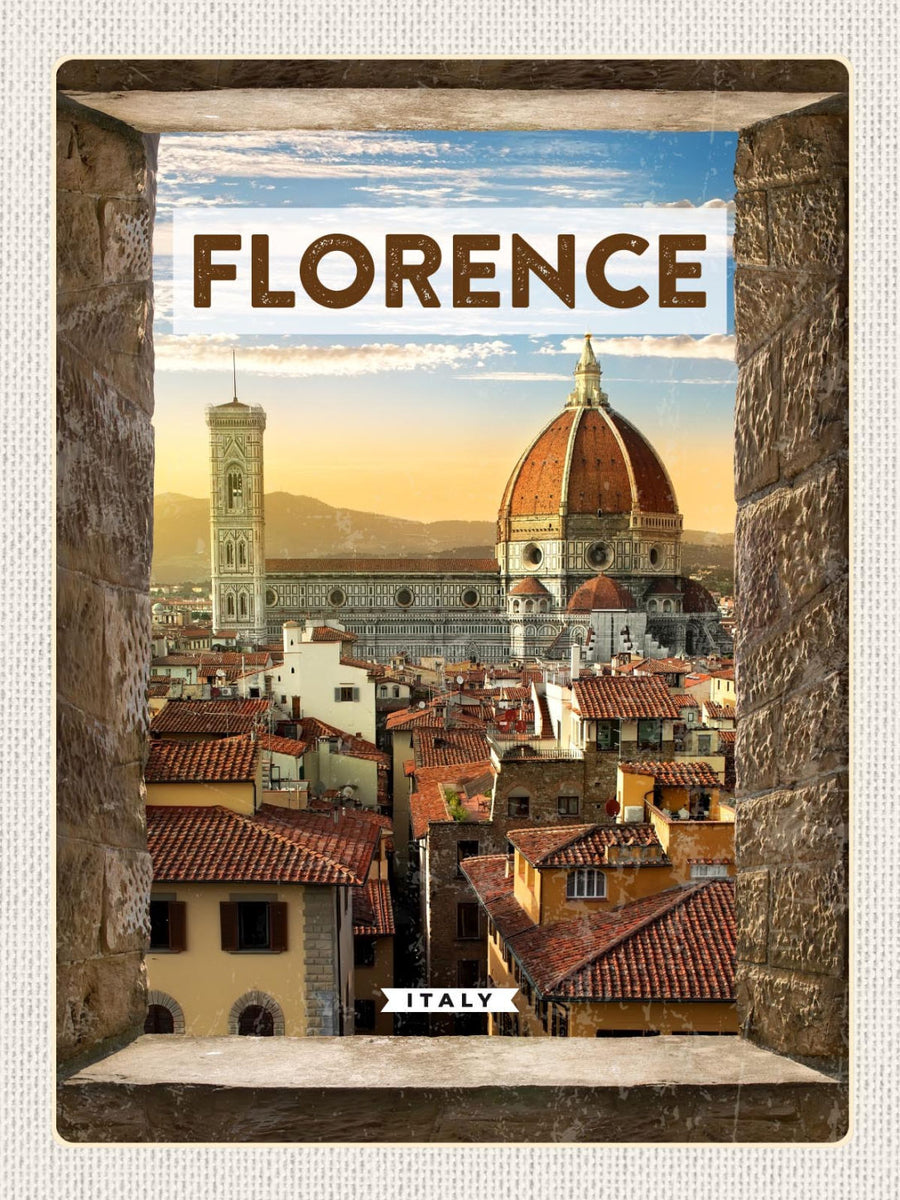Entdecken Sie das faszinierende Flair von Florenz mit unserem exquisiten Schild "Florence Italy Florenz Italien Dom Blick". Dieses kunstvolle Dekorationsstück fängt die majestätische Schönheit des weltberühmten Doms von Florenz ein und verleiht Ihrem Raum eine elegante, italienische Note.