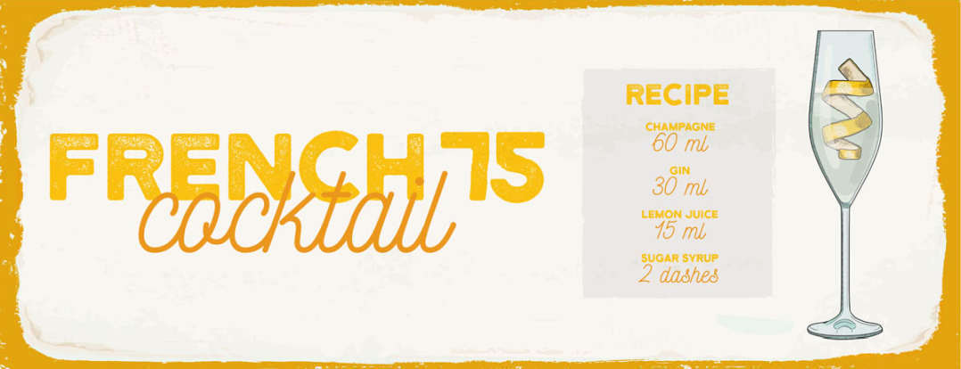 Schild French 75 Cocktail Rezept Bar Alkohol Drink Champagner 27x10Blech od.Holz Im Angebot