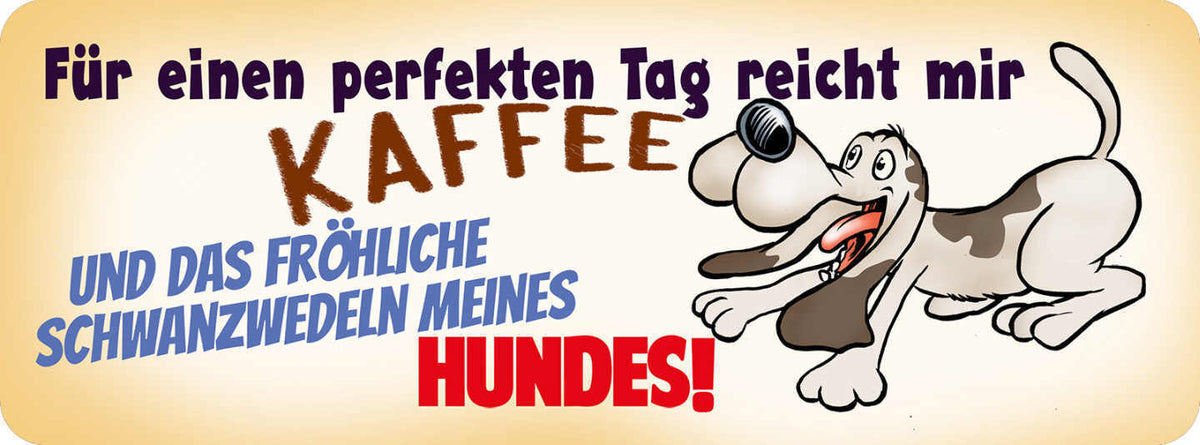 Schild Für Einen Perfekten Tag Reicht Mir Kaffee Fröhliches Schwanzwedeln Hund Im Angebot
