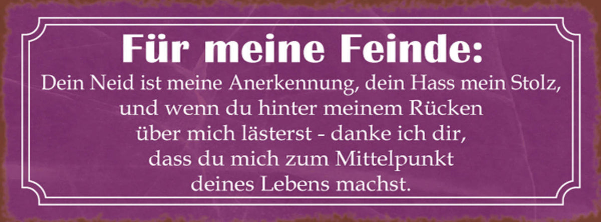 Schild Für Meine Feinde Neid Ist Meine Anerkennung Hass Stolz Mittelpunkt Lebens Im Angebot