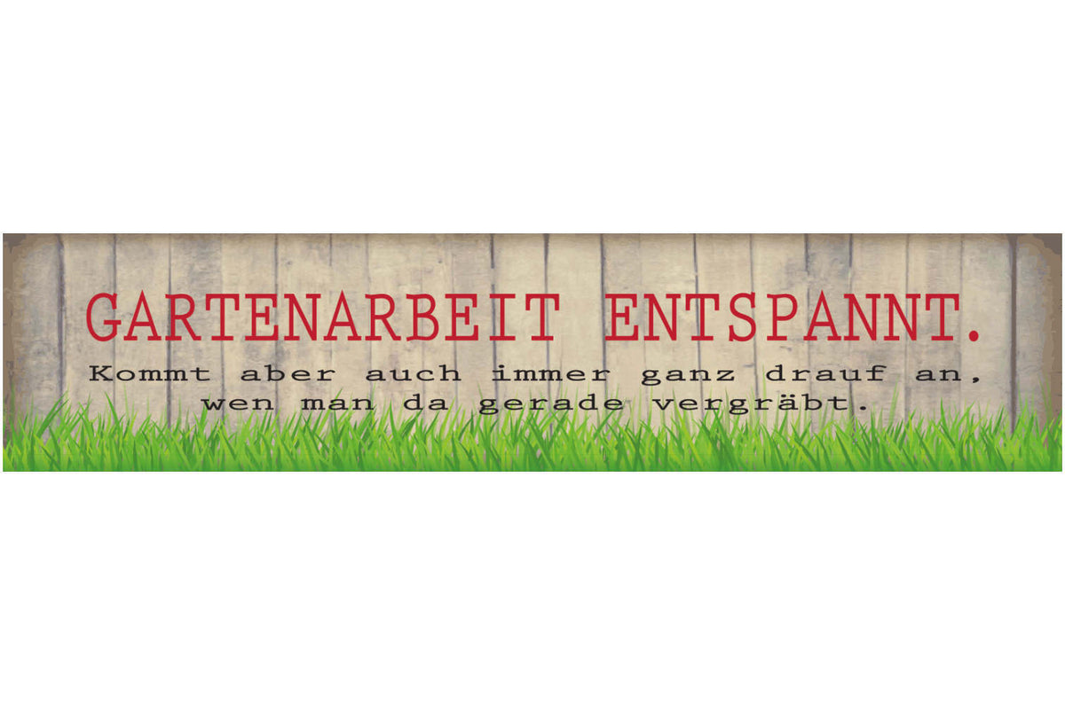 Schild Garten Arbeit Entspannung Vergraben Schaufel Grab 46 x 10 Blech od. Holz Im Angebot