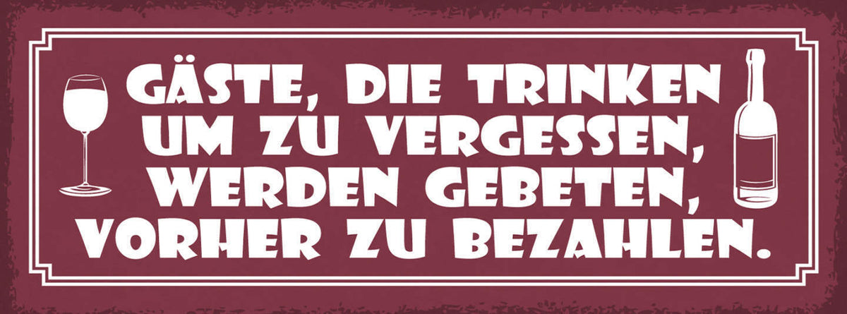 Schild Gäste Die Trinken Um Zu Vergessen Werden Gebeten Vorher Zu Bezahlen 27x10 Im Angebot