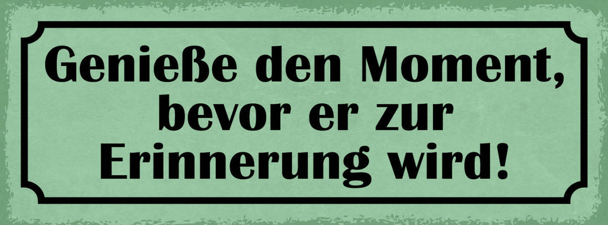 Schild Genieße Den Moment Bevor Er Zur Erinnerung Wird 27x10 Blech od.Holz Im Angebot