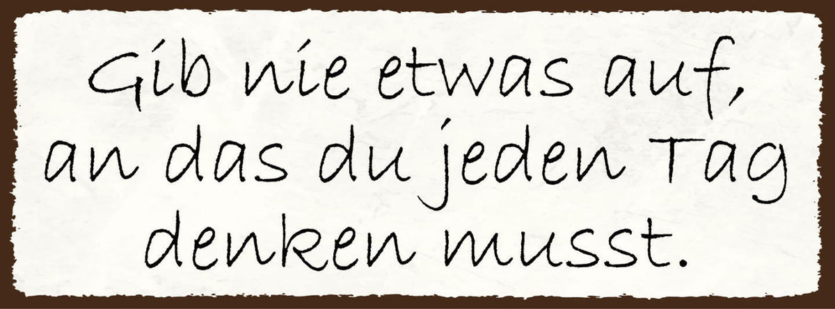 Schild Gib Nie Etwas Auf An Das Du Jeden Tag Denken Musst 27x10 Blech od.Holz Im Angebot