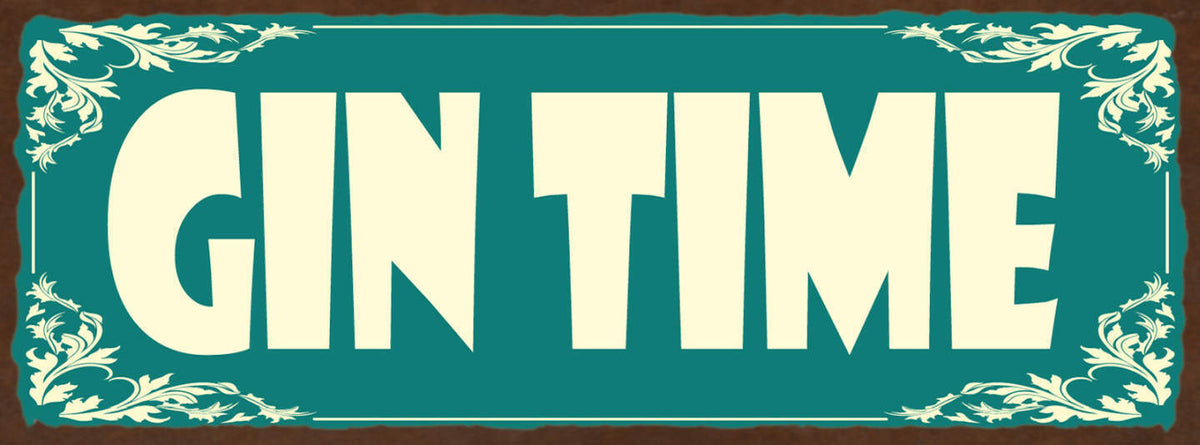 Schild Gin Time Zeit Alkohol Spirituose Bar Lokal Trinken 27x10 Blech od.Holz Im Angebot