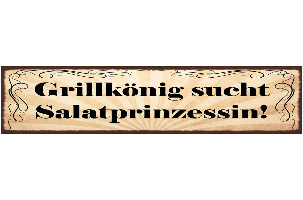 Schild Grill König Sucht Salat Prinzessin Liebe Grillen 46 x 10 Blech od. Holz Im Angebot