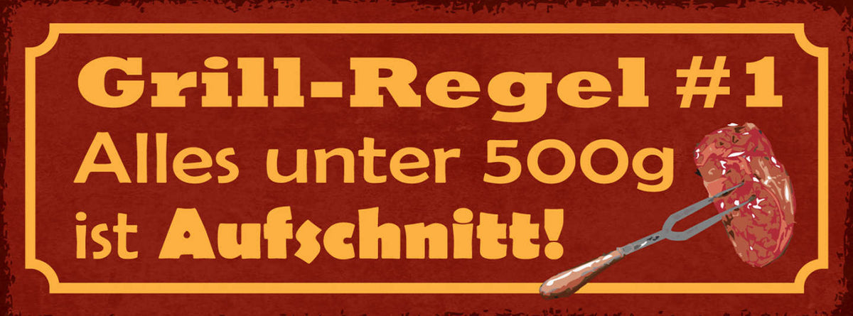 Schild Grill Regel #1 Alles Unter 500g Ist Aufschnitt 27x10 Blech od.Holz Im Angebot