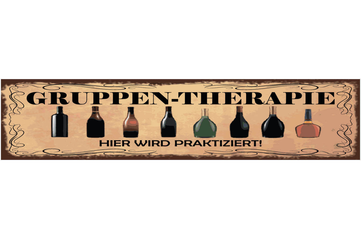 Schild Gruppen Therapie Hier Wird Praktiziert Alkohol 46 x 10 Blech od. Holz Im Angebot