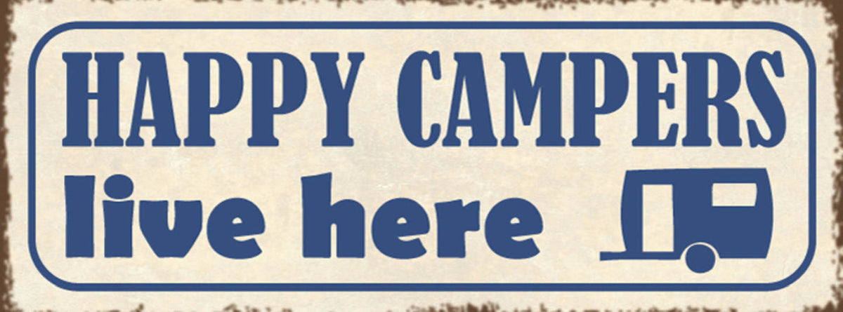 Schild Happy Campers Live Here Campen Camping Wohnwagen 27x10 Blech od.Holz Im Angebot