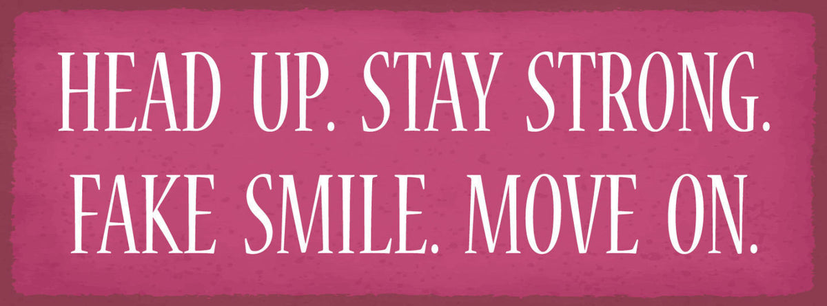 Schild Head Up Stay Strong Fake Smile Move On Stark Bleiben 27x10 Blech od.Holz Im Angebot