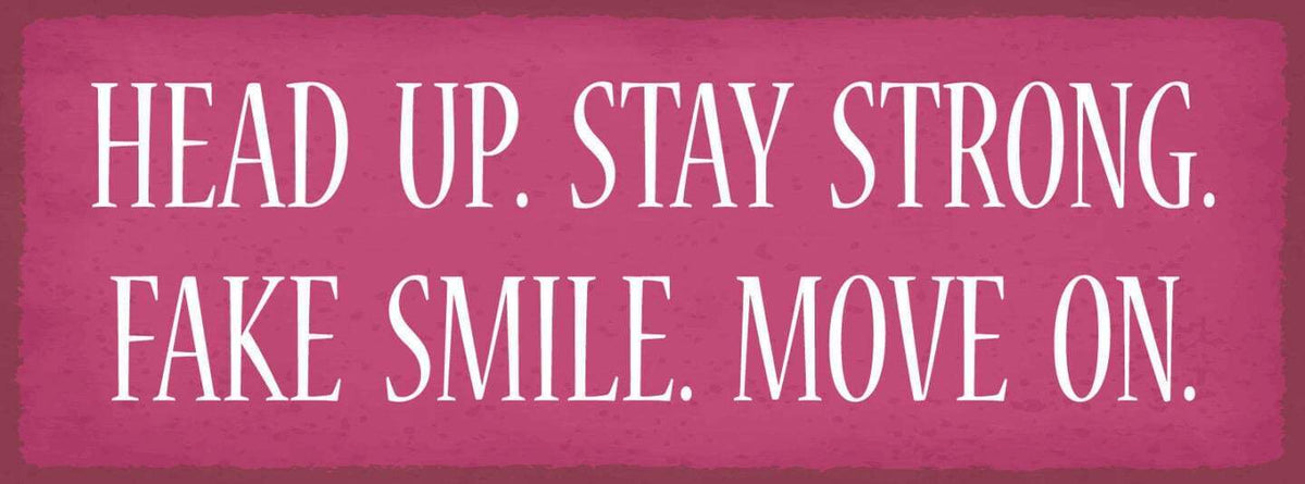 Schild head up stay strong fake smile move on stark bleiben 27x10 blech od.holz Im Angebot