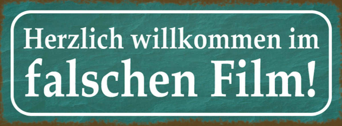 Schild Herzlich Willkommen Im Falschen Film Verrückt 27 x 10 Blech od. Holz Im Angebot