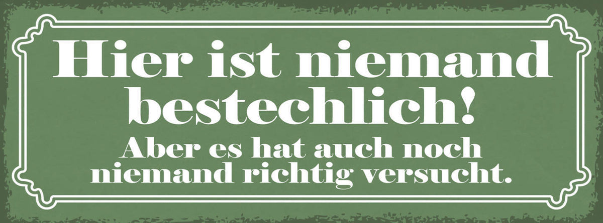 Schild Hier Ist Niemand Bestechlich Es Hat Auch Noch Niemand Richtig Versucht Im Angebot