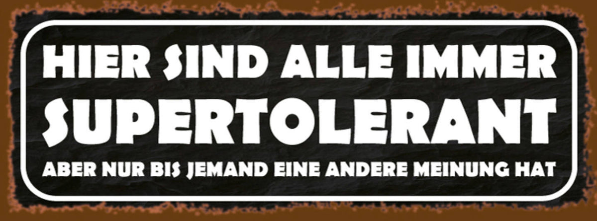 Schild Hier Sind Alle Immer Super Tolerant Bis Jemand Eine Andere Meinung Hat Im Angebot