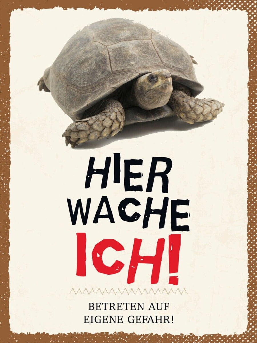 Schild Hier Wache Ich Schildkröte Gefahr Haus Tier 12x18 20x30 30x40 Blech/Holz Im Angebot