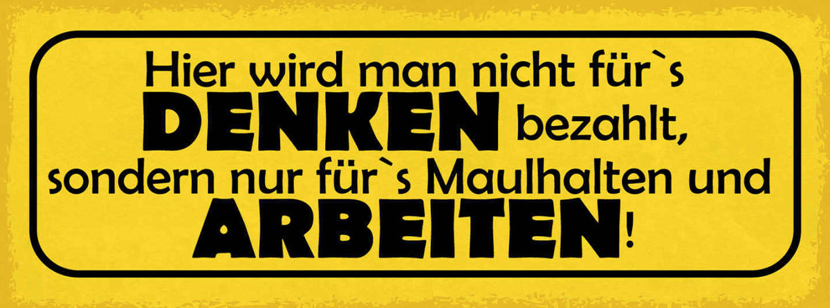 Schild Hier Wird Man Nicht Für's Denken Bezahlt Sondern Maulhalten & Arbeiten Im Angebot