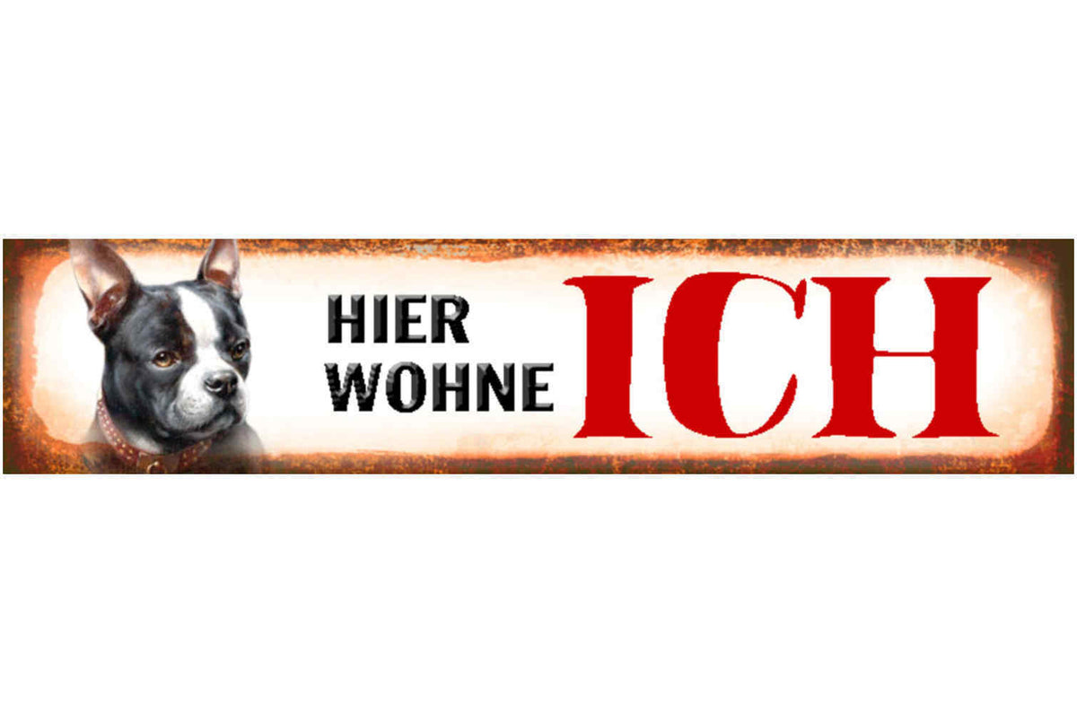 Schild Hier wohne Ich Französische Bulldogge Hund Haustier 46 x 10 Blech od.Holz Im Angebot