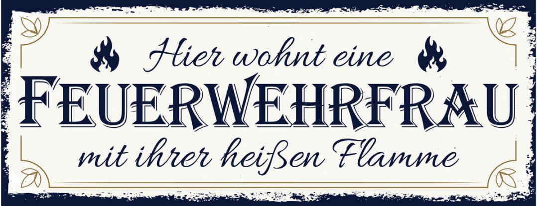 Schild Hier Wohnt Eine Feuerwehrfrau Mit Ihrer Heißen Flamme 27x10 Blech od.Holz Im Angebot