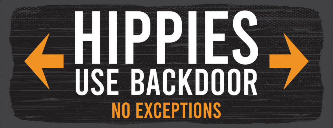 Schild Hippies Use Backdoor No Exceptions Hintertür Hippie 27x10 Blech od.Holz Im Angebot