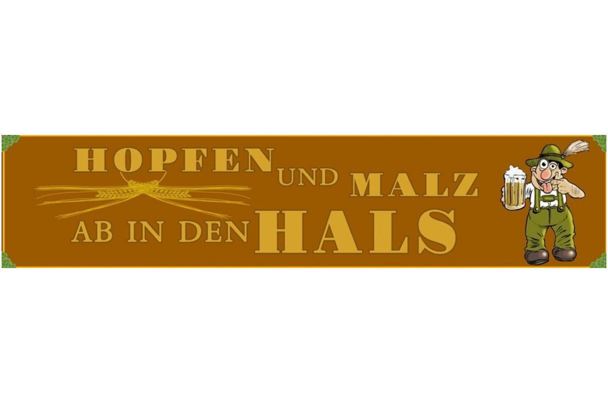 Schild Hopfen Malz Hals Bier Alkohol Glas Bar Lokal Wirt 46 x 10 Blech od. Holz Im Angebot
