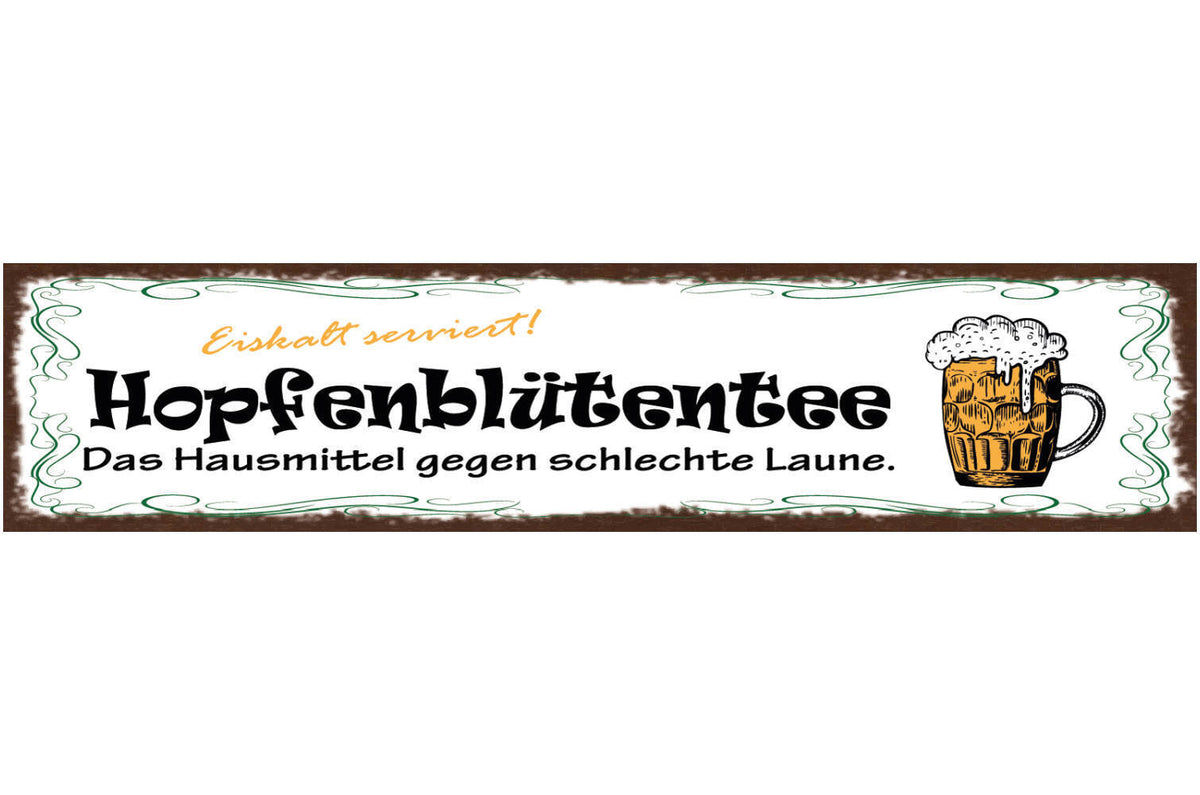 Schild Hopfenblütentee Hausmittel Gegen Schlechte Laune Bier 46x10 Blech od.Holz Im Angebot