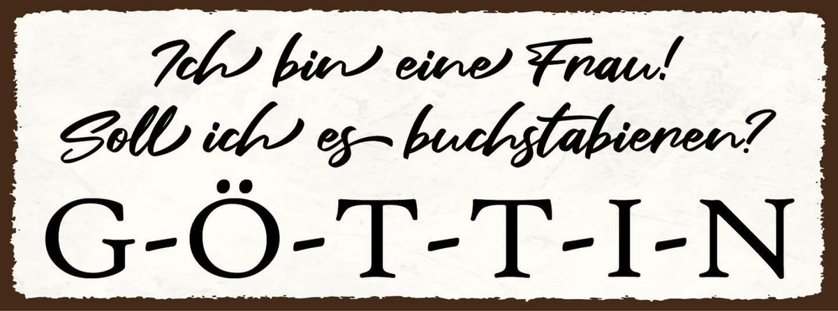 Schild Ich Bin Eine Frau Soll Ich Es Buchstabieren Göttin 27x10 Blech od.Holz Im Angebot