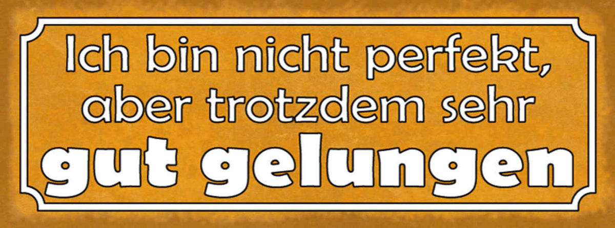 Schild Ich Bin Nicht Perfekt Aber Trotzdem Sehr Gut Gelungen 27x10 Blech od.Holz Im Angebot
