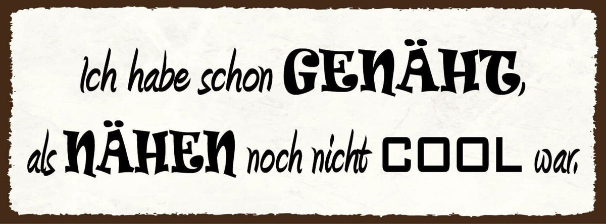 Schild ich habe schon genäht als nähen noch nicht cool war 27x10 blech od.holz Im Angebot