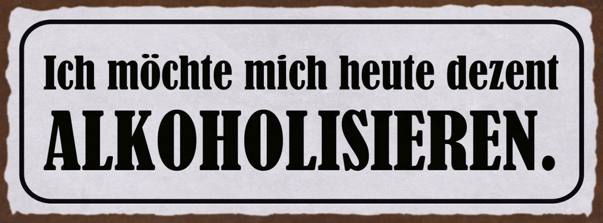 Schild Ich Möchte Mich Heute Dezent Alkoholisieren Alkohol 27x10 Blech od.Holz Im Angebot