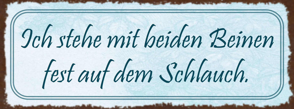 Schild Ich Stehe Mit Beiden Beinen Fest Auf Dem Schlauch 27x10 Blech od.Holz Im Angebot