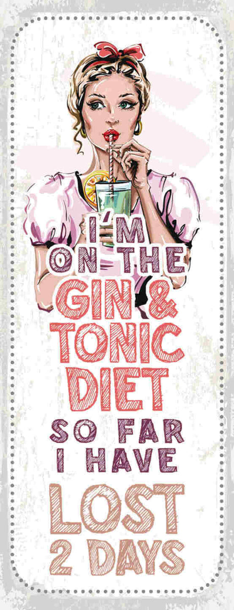 Schild I'm On The Gin & Tonic Diet So Far I Have Lost 2 Days 27x10 Blech od.Holz Im Angebot