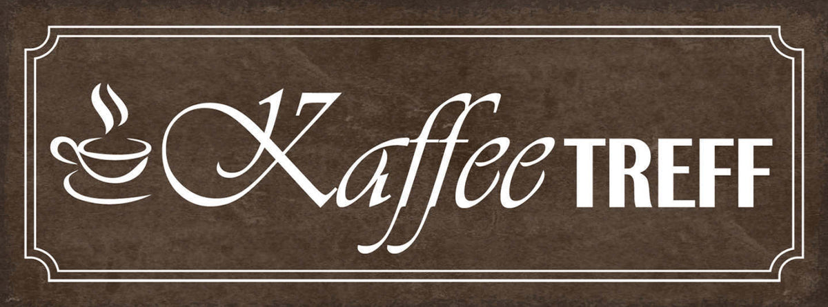 Schild Kaffee Treff Café Kaffeehaus Trinken Klatsch Treffen 27x10 Blech od.Holz Im Angebot