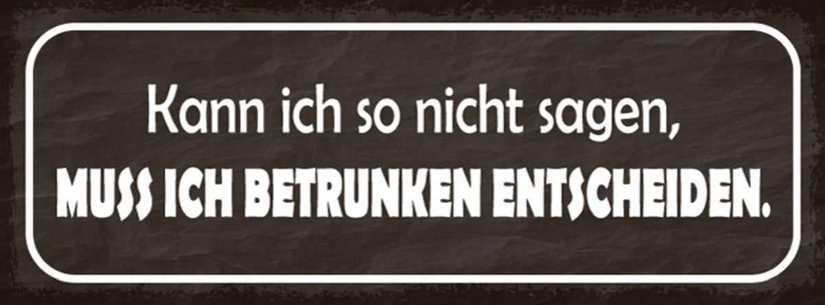 Schild Kann Ich Nicht Sagen Muss Ich Betrunken Entscheiden 27x10 Blech od.Holz Im Angebot