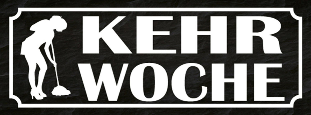 Schild Kehr Woche Besen Putzen Reinigen Kehren Hausputz 27x10 Blech od.Holz Im Angebot