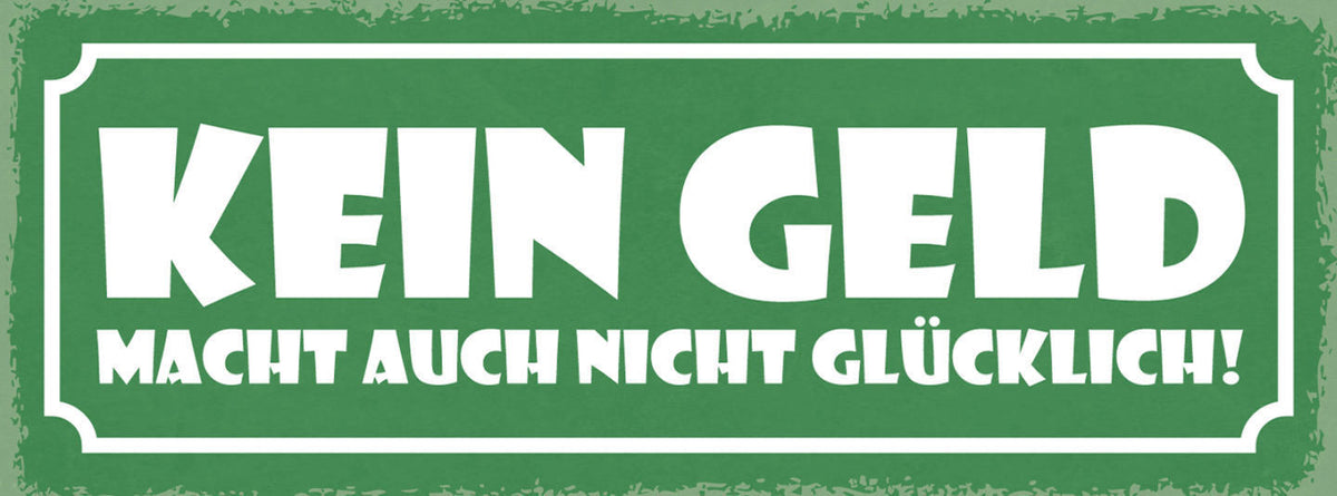 Schild Kein Geld Macht Auch Nicht Glücklich Pleite Leben 27x10 Blech od.Holz Im Angebot