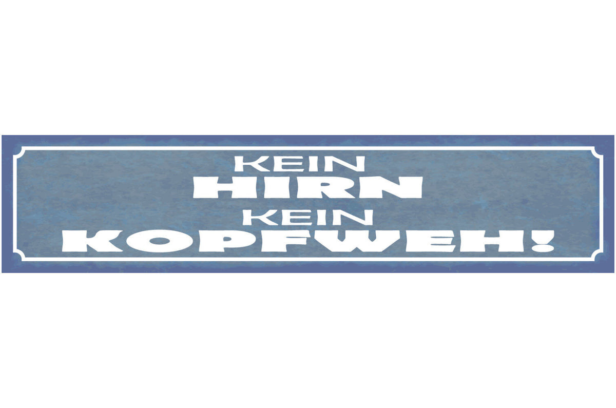 Schild Kein Hirn Kein Kopfweh Schmerzen Gehirn Migräne 46 x 10 Blech od. Holz Im Angebot