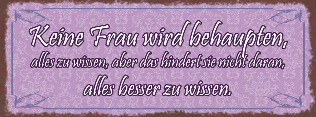 Schild Keine Frau Wird Behaupten Alles Zu Wissen Hindert Nich Besser Zu Wissen Im Angebot