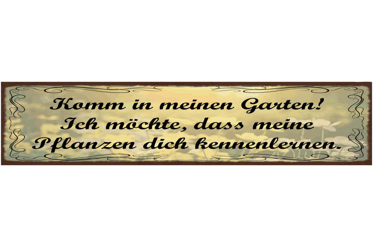 Schild Komm In Meinen Garten Ich Möchte Dass Meine Pflanzen Dich Kennenlernen Im Angebot