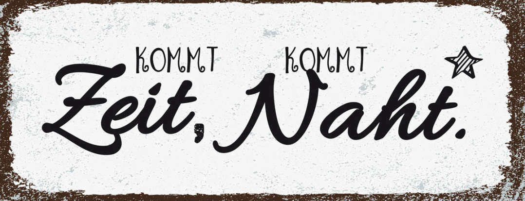 Schild Kommt Zeit Kommt Naht Nähen Handarbeit Hobby Freizeit 27x10 Blech od.Holz Im Angebot