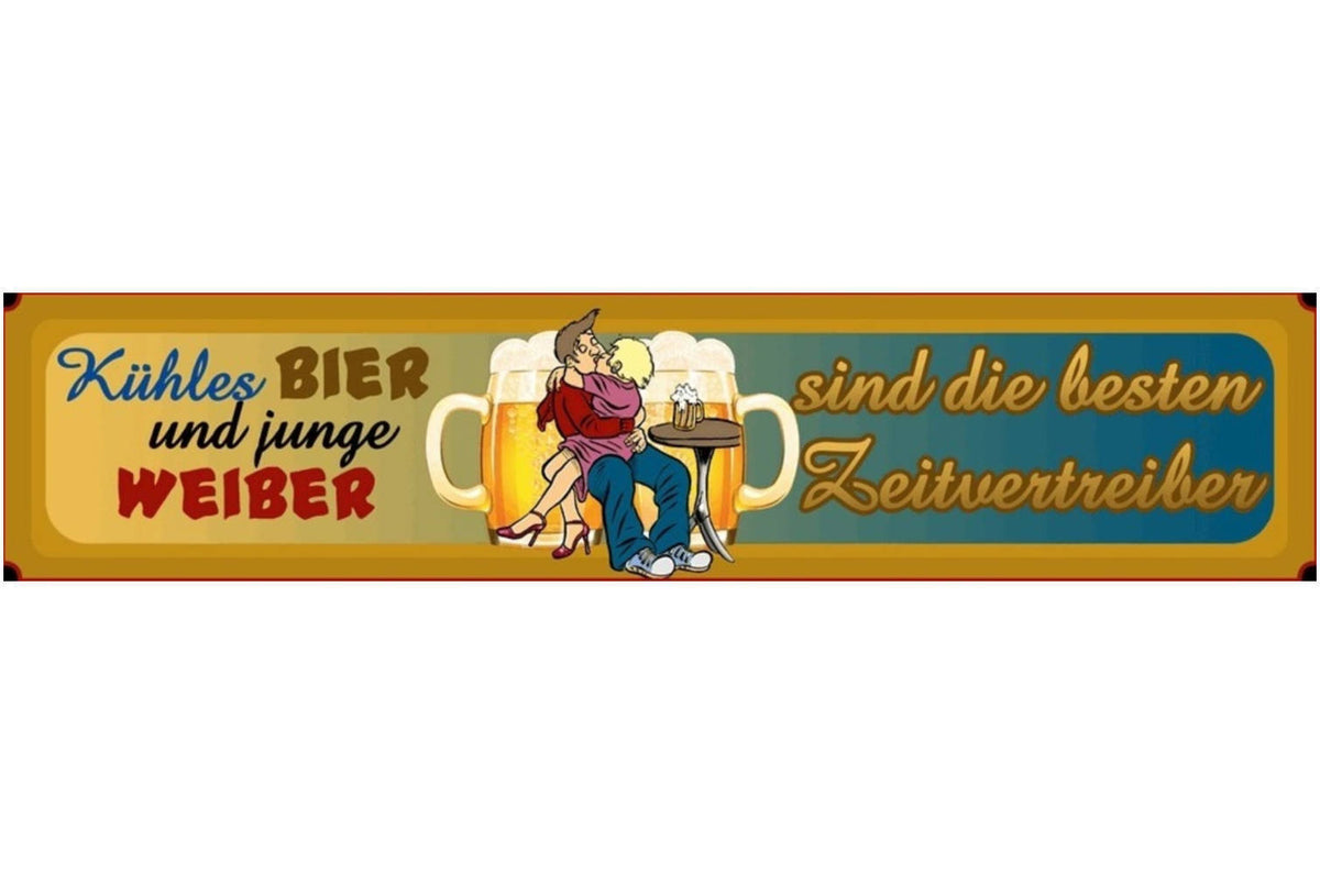 Schild Kühles Bier Junge Weiber Alkohol Frau Zeitvertreib 46 x 10 Blech od. Holz Im Angebot