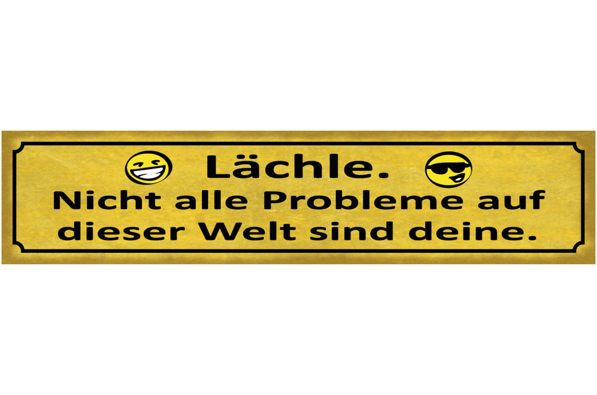 Schild Lächle Nicht Alle Probleme dieser Welt sind Deine 46 x 10 Blech od. Holz Im Angebot