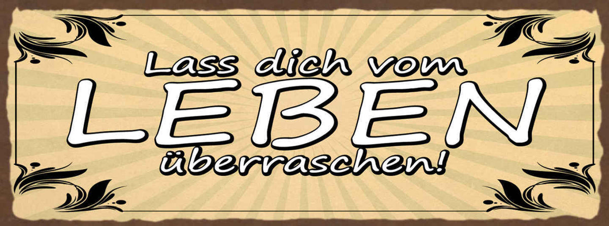 Schild Lass Dich Vom Leben Überraschen Kein Plan Offenheit 27x10 Blech od.Holz Im Angebot