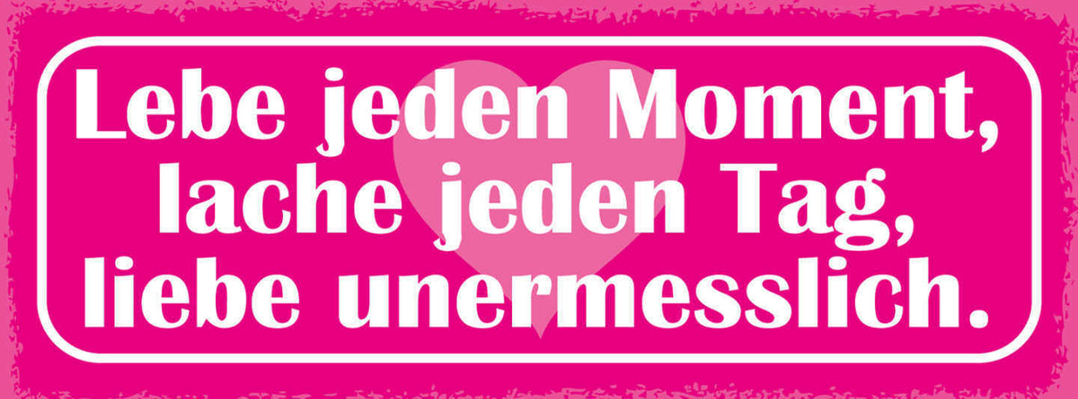 Schild Lebe Jeden Moment Lache Jeden Tag Liebe Unermesslich 27x10 Blech od.Holz Im Angebot
