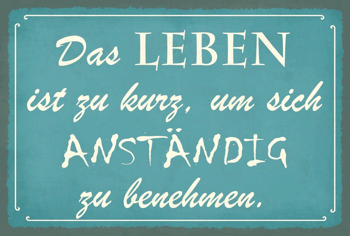 Schild Leben zu kurz Anständig Benehmen 12x18 / 20x30 / 30x40 Blech od. Holz Im Angebot
