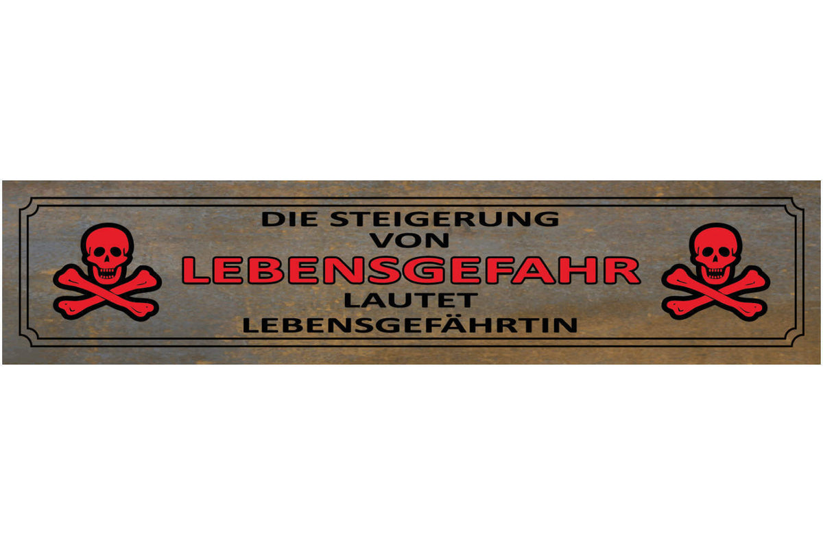 Schild Lebensgefahr Lebensgefährtin Partner Ehe Beziehung 46 x 10 Blech od. Holz Im Angebot