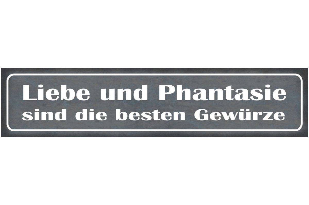 Schild Liebe Phantasie Gewürze Küche Kochen Ehe Beziehung 46 x 10 Blech od. Holz Im Angebot